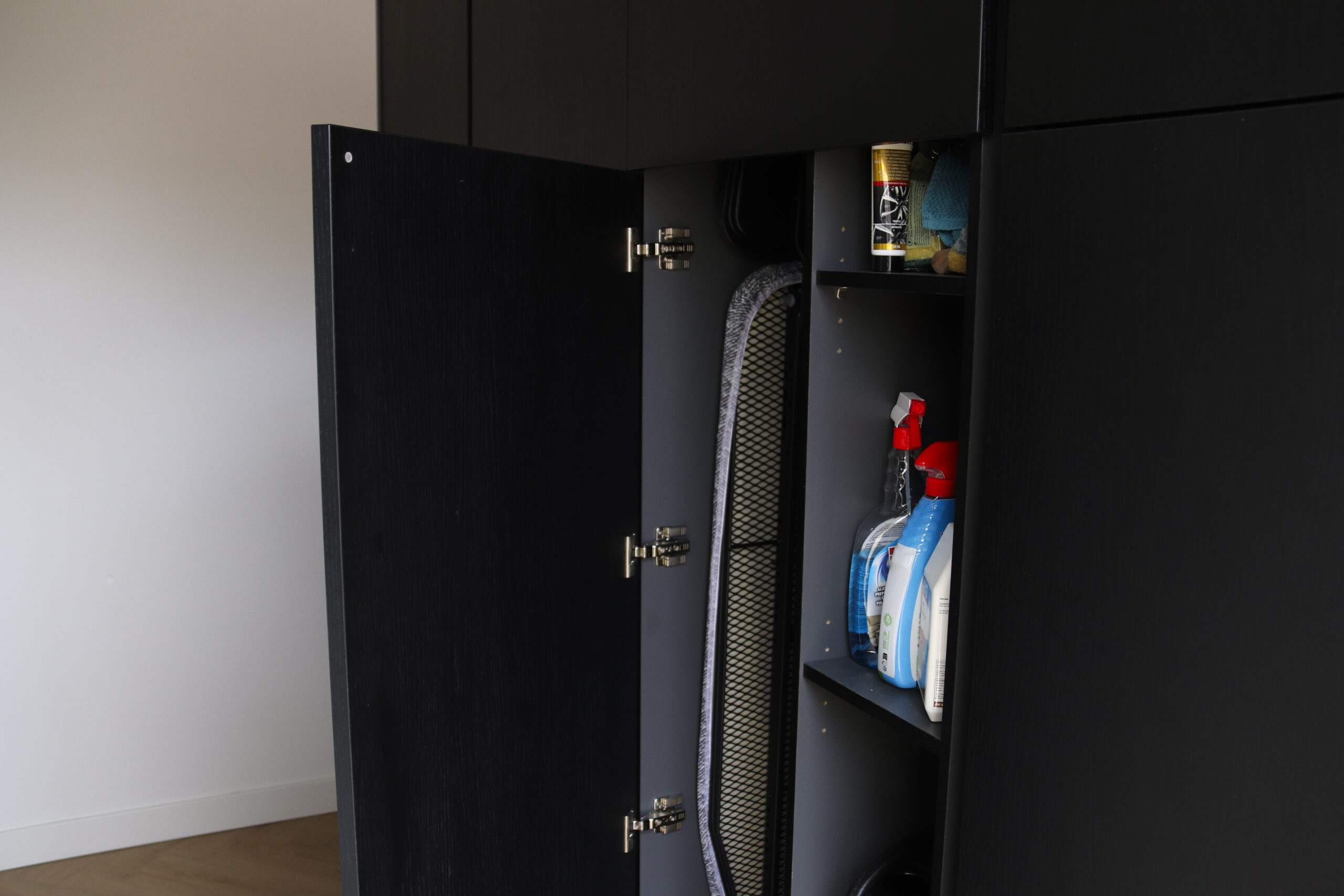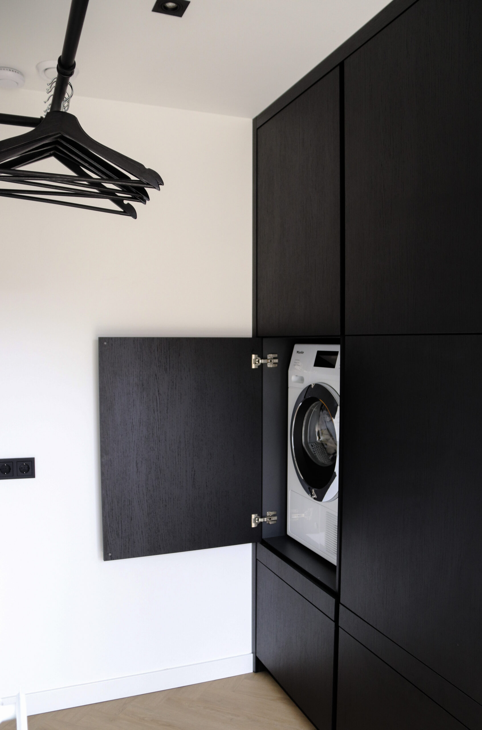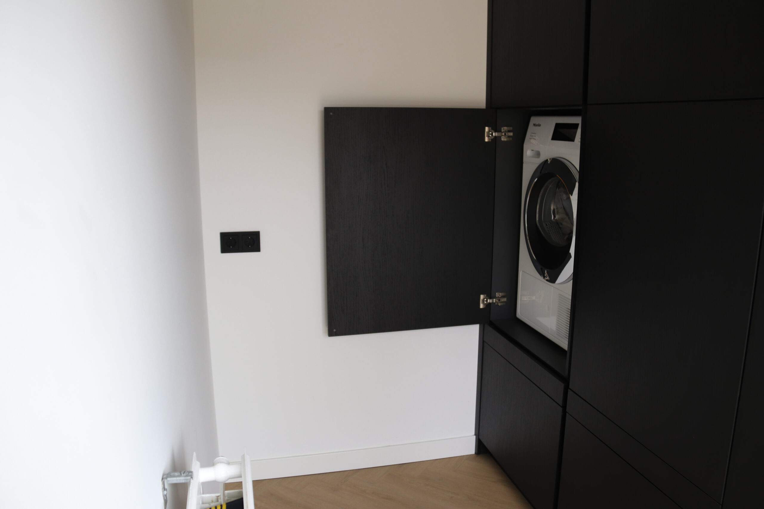 Voor deze klant in Udenhout hebben wij ook een Keuken gemaakt. Deze bijkeuken is afgestemd op de keuken zo wordt het een geheel. In de kast zit een vriezer en wasmachine en droger op hoogte weggewerkt.