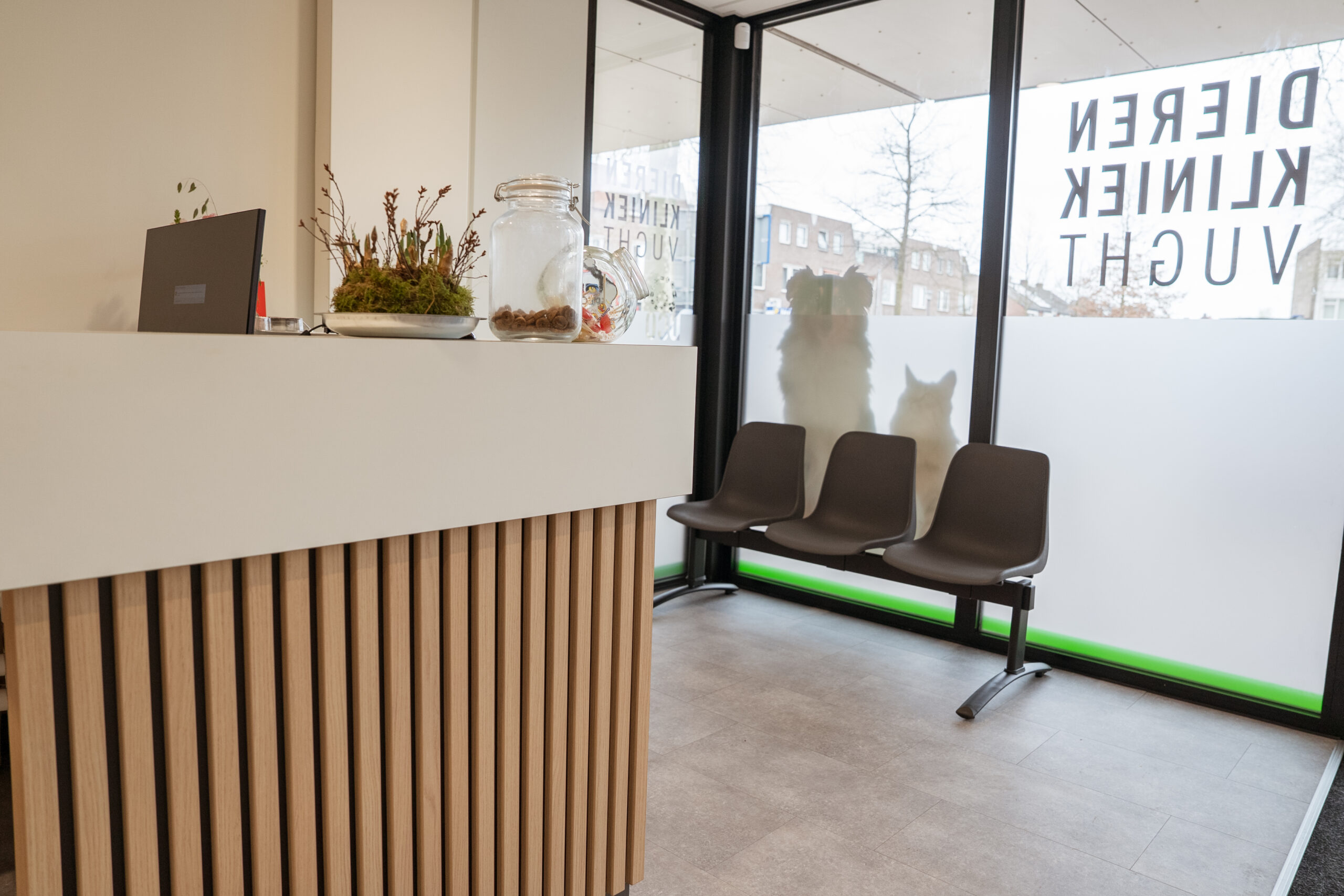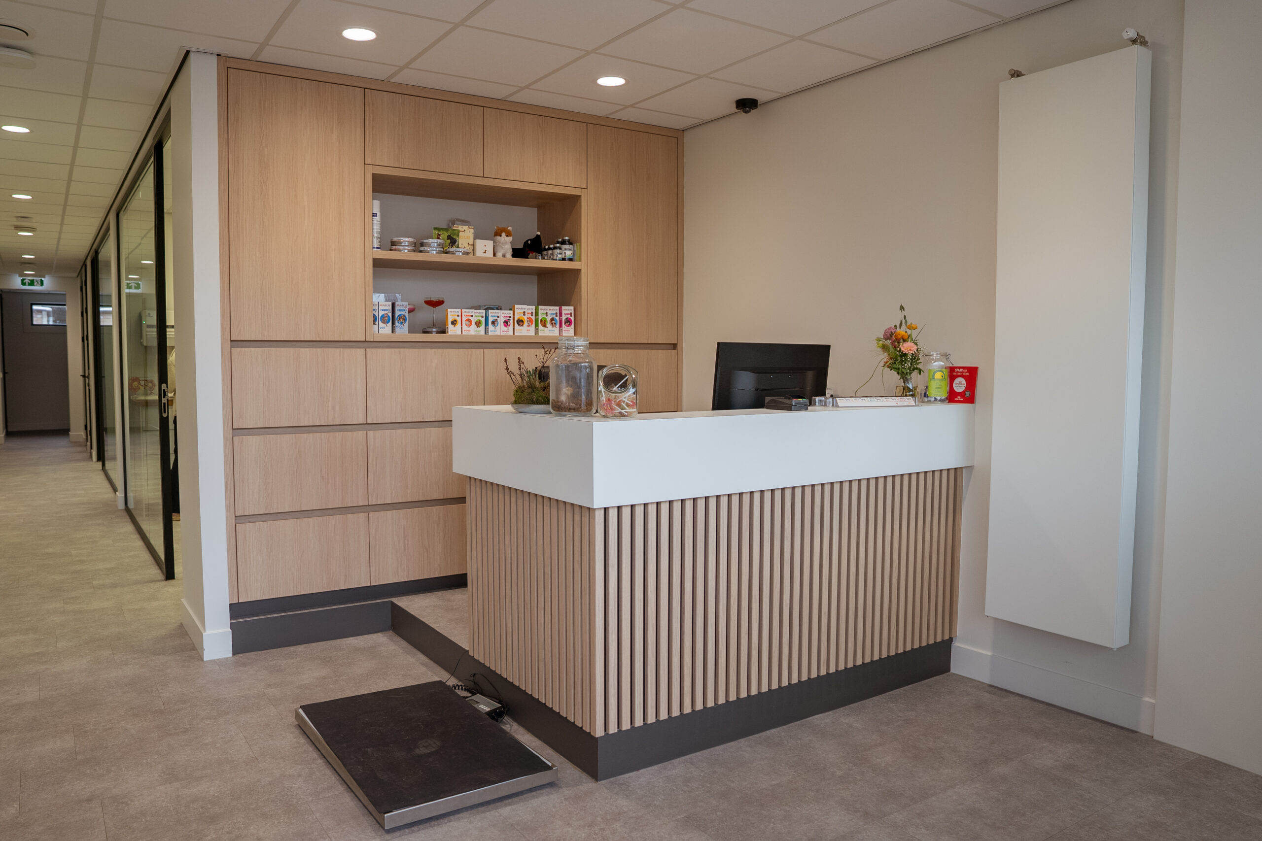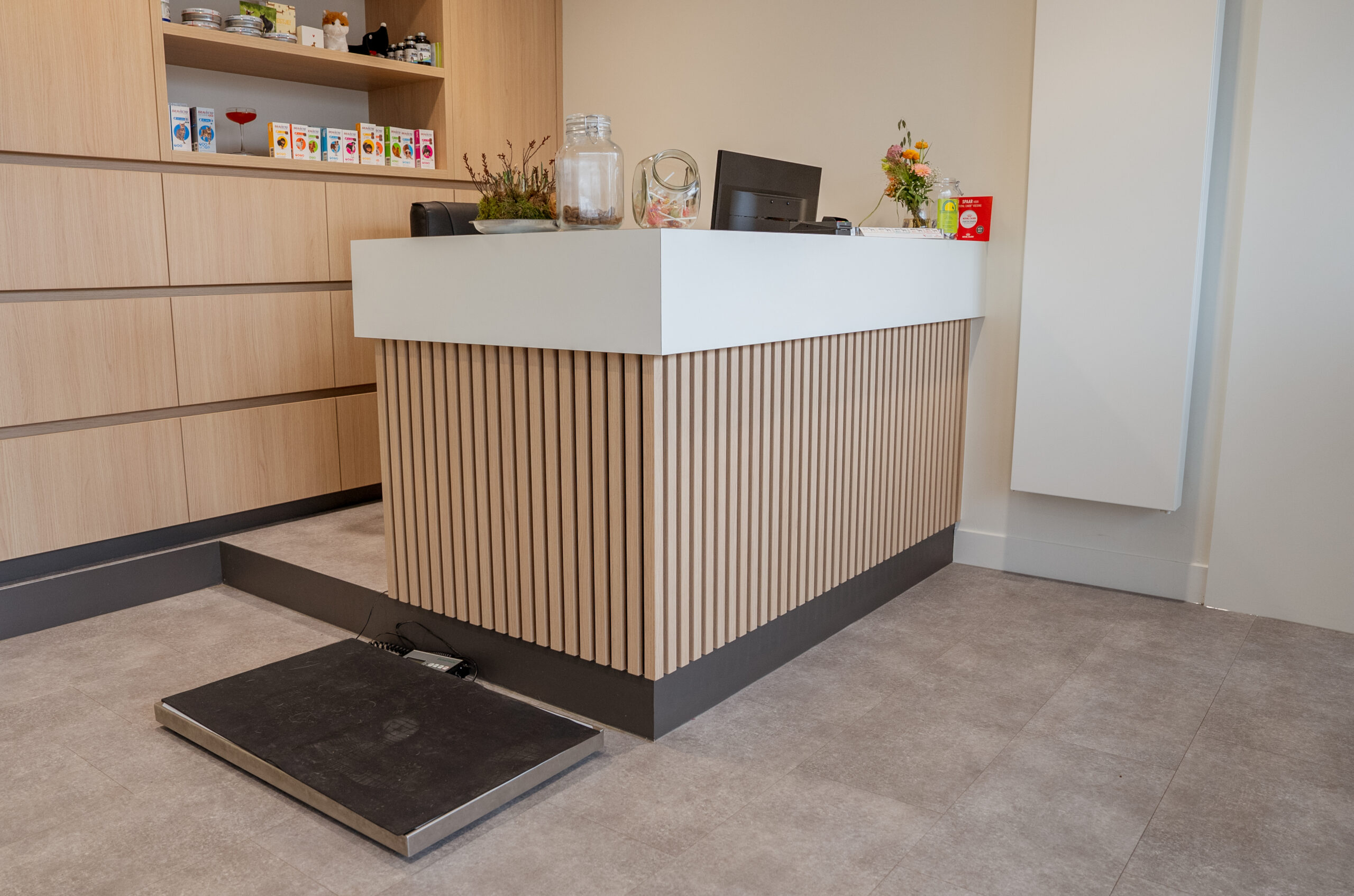 De balie vormt het centrale ontvangstpunt van de praktijk en is ontworpen met een stijlvolle, functionele uitstraling. Dankzij de efficiënte indeling biedt de balie voldoende werkruimte voor het personeel en worden de klanten op een gastvrije manier ontvangen.