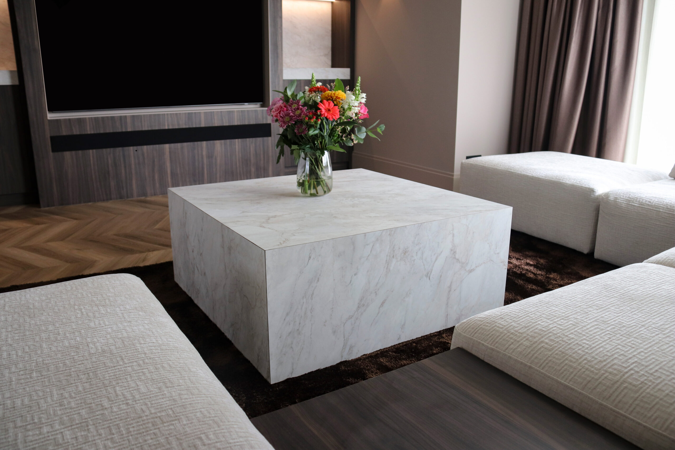 Voor deze klant hebben we ook het Tv meubel gemaakt, de wens was om ook een salontafel en banktafel te maken in dezelfde stijl als het Tv meubel.