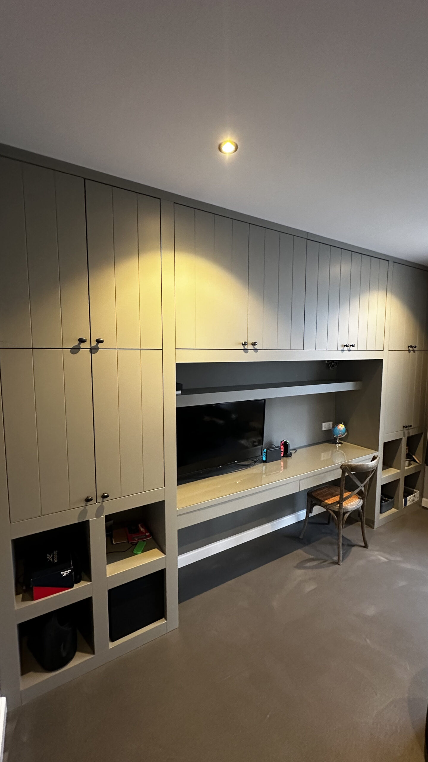 Voor deze klant hebben we de bestaande kast aangepast en uitgebreid met nieuwe tussenkasten en een bureau. In deze speelkamer hebben we een plek gecreëerd voor de kinderen, waar het speelgoed netjes in de kasten opgeborgen kan worden.